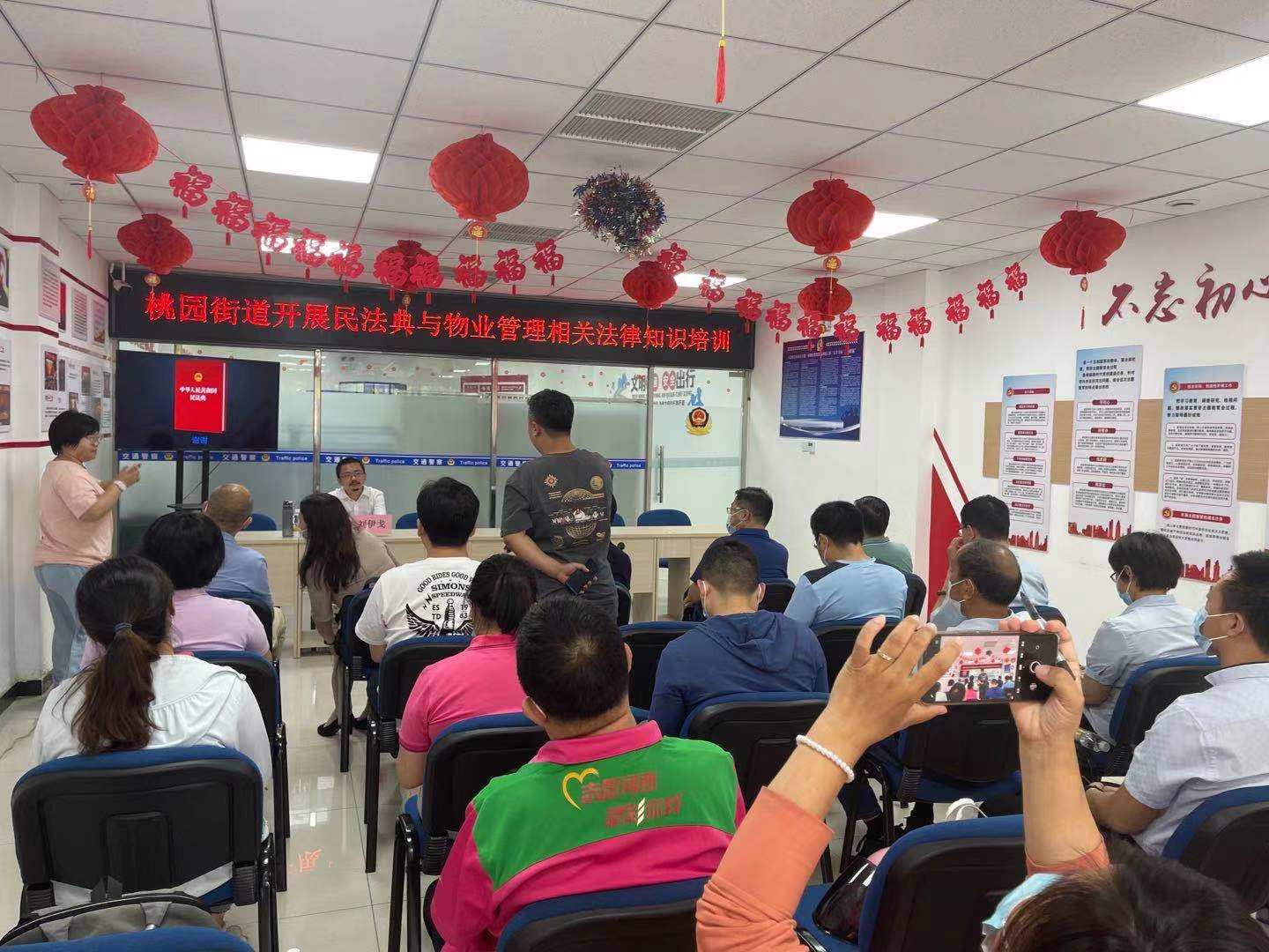 活动期间,市法学会向桃园街道赠送《中华人民共和国民法典》等法律书籍。天津东法律师事务所刘伊戈律师就社区居民关注的民法典与物业管理相关法律知识进行专题讲解,通过一个个与群众息息相关的生动事例,深入浅出地讲解民法典在日常生活中的实际运用。培训结束后,社区工作人员和群众代表针对物业、遗产分配等热点法律问题进行了现场咨询。